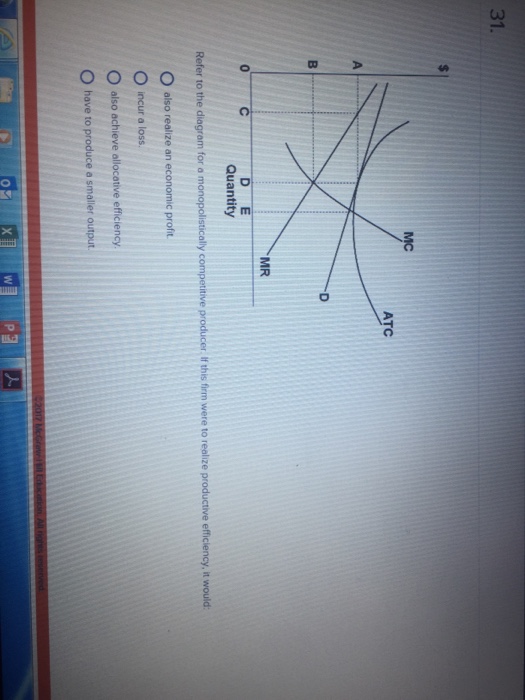 Refer to the diagram for a monopolistically competitive producer. If this firm were to realize productive efficiency, it would An unregulated pure monopolist will maximize profits by producing that output ... Refer to the diagram, which pertain to monopolistically competitive firms.