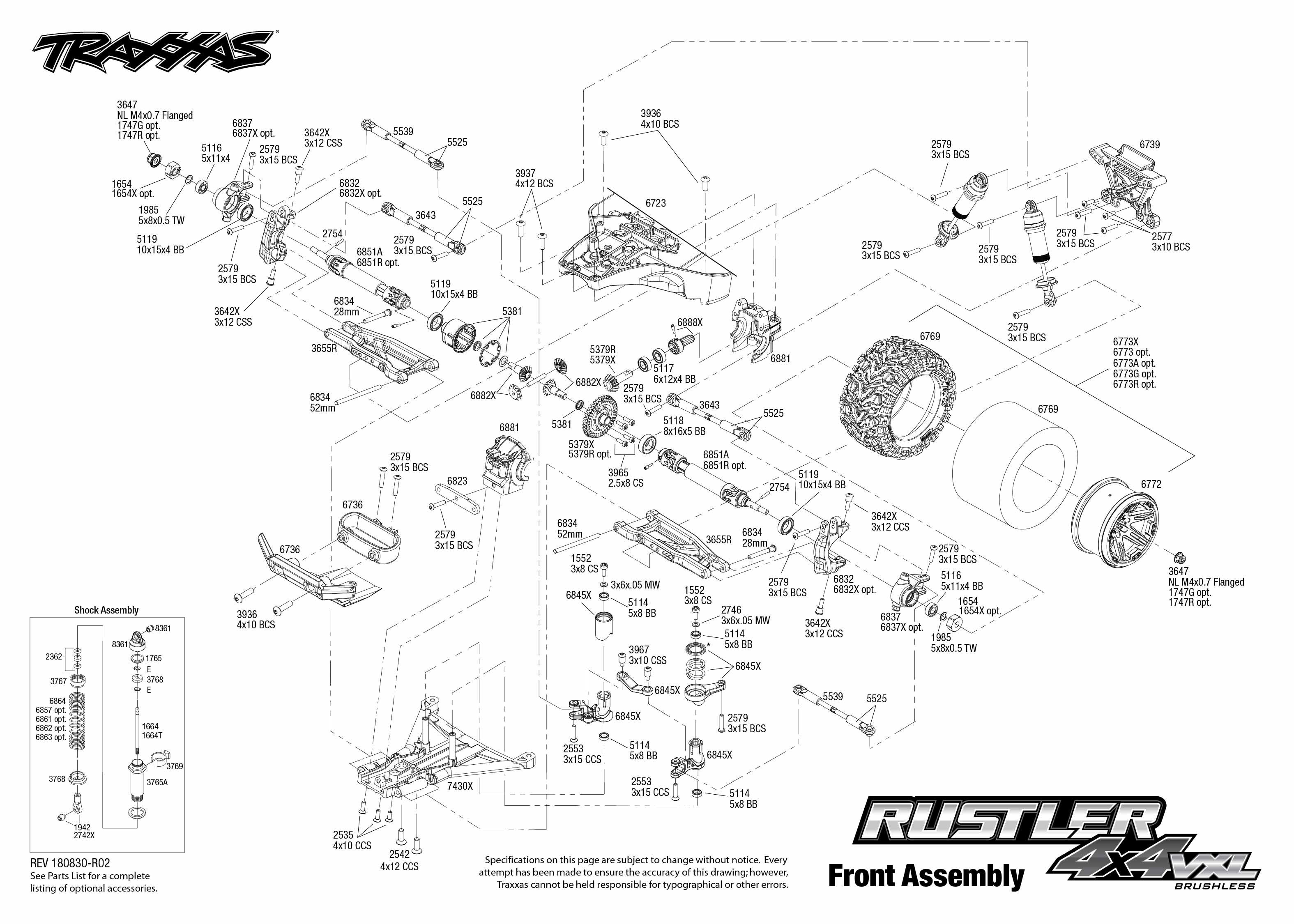 TRAXXAS. Traxxas LED Light Kit for Rustler 4X4, 6795. This is the LED Light Kit for the Rustler 4X4 XL-5 and VXL models. Built Traxxas Tough™The Traxxas Rustler 4X4 takes stadium truck performance to new heights. Traxxas Bandit (2405) Front Assembly Exploded View. Skip to main content. Gift ... Parts & Accessories; Batteries & Chargers; Community; Support; News; Apparel; FREE standard shipping on all orders over $99! Discount automatically applied at checkout. Learn more. Traxxas Support will be closed Thursday 11/25 and Friday 11/26 for Thanksgiving. We will return to normal hours on Saturday, 11/27 ...