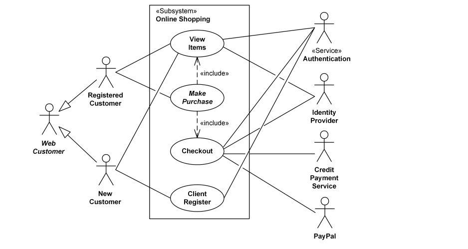 Create a use case diagram with flows and alternative flows for an online shopping scenario. Provide an overview of your diagram, including a detailed description of the actor (s) in your diagram. Actors. Use case modeling begins with the identification and documentation of users, or actors. The main purpose of developing a software solution is ...