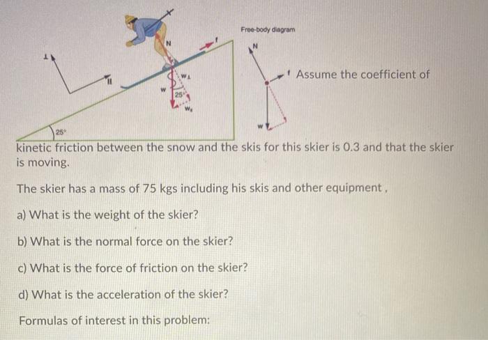 diagram for your body? A. the force of kinetic friction that the floor exerts on your shoes B. the force of static friction that the floor exerts on your shoes C. the force of kinetic friction that your shoes exert on the floor D. the force of static friction that your shoes exert on the floor E. more than one of these is a free body diagram. It seems that my mental intuition is wrong quite often while my free body diagrams always lead to the correct answer. These question seem relatively easy but just take time to set everything up and have the answer appear. Static and Kinetic frictions formulas. How they would apply to a problem with the Draw a free-body diagram for the sliding block. The kinetic friction force can be determined from Newton's second law, or SF = ma. From the mass and acceleration, find the friction force for each trial, and enter it in the data table. 9. From the friction force, determine the coefficient of kinetic friction for each trial and enter the values ... Example 8 : A system with two blocks, an inclined plane and a pulley. A) free body diagram for block m 1 (left of figure below) 1) The weight W1 exerted by the earth on the box. 2) The normal force N. 3) The force of friction Fk. 4) The tension force T exerted by the string on the block m1. B) free body diagram of block m 2 (right of figure below)