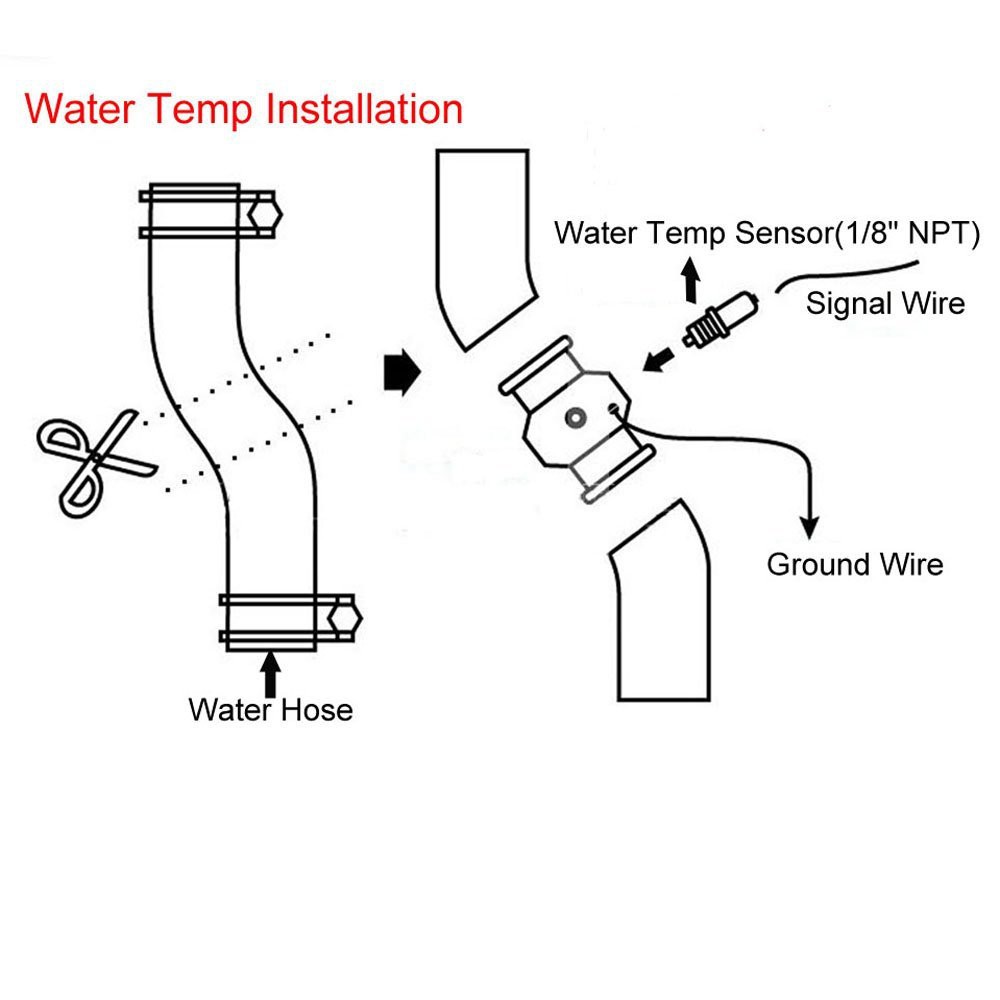 No need for piping for water sensor; simple wiring to pick up the standard sensors ... See the diagram in the [Water Temperature Sensor Signal Diagram] for.1 page Wiring Diagram. Ignition harness / Fuse box. Red. Ignition 12V+. Green. Sensor input-. Ignition harness / Fuse box. Water temp sender output (red wire of ...