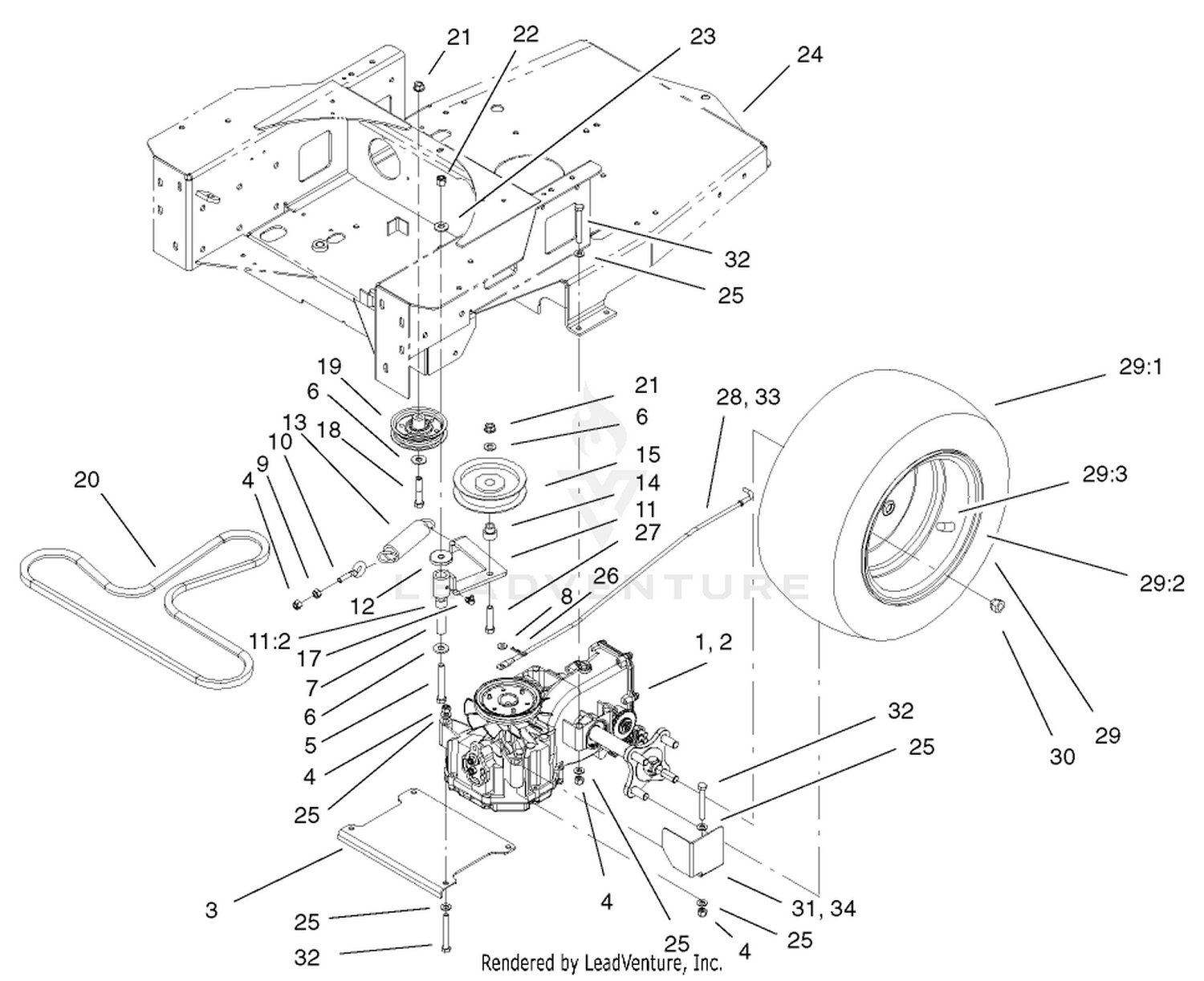 Toro 74501 Z16 44 Timecutter Z Riding Mower 2002 Sn 220000001 220999999 Hydro And Belt Drive Assembly