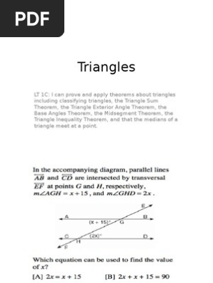 Apr 30, 2019 · Find the length of the midsegment. The diagram is not to scale. Find the length of the. Here is my picture. So by the converse of the corresponding angles postulate l is parallel to m use the information measurement of angle 1 is 3x 30 and measurement of angle 2 5x 10 and x 20 and the theorems you have learned to show that l is parallel to m. The diagram is not to scale. Find the value of x.