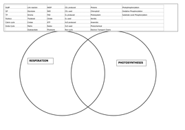 Venn diagrams are a great way to organize data and information so you can see connections between them. Your goal is to organize characteristics of cellular respiration and photosynthesis, analyze those characteristics, and draw conclusions about the similarities and differences between the two pathways.