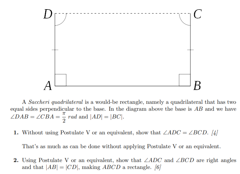 prerequisite vs postulate - what is the difference Side-Angle-Side (SAS) Postulate Side-Side-Side (SSS) Postulate ... Two people stand on opposite sides of a river, as illustrated by the dotted lines in the diagram below. ... 18 The top of a ladder is leaning on a building at a point 12 feet above the ground; the bottom of the ladder is 5 feet from the base of the building. ... Analyze the diagram below and answer the question that follows. (V, W, H). What postulate is illustrated by the diagram above? C. Flat plane postulate. Analyze the diagram below and answer the question that follows. (Image by Win). The diagram above and is an example of non-Euclidean geometry. What type of non-Euclidean geometry does it represent? Next Post Next Analyze the diagram below and the question that follows. h what postulate is illustrated by the diagram above? Search for: Search. Recent Posts. The on an investment is the investor's gain or loss on the investment over a period of time.