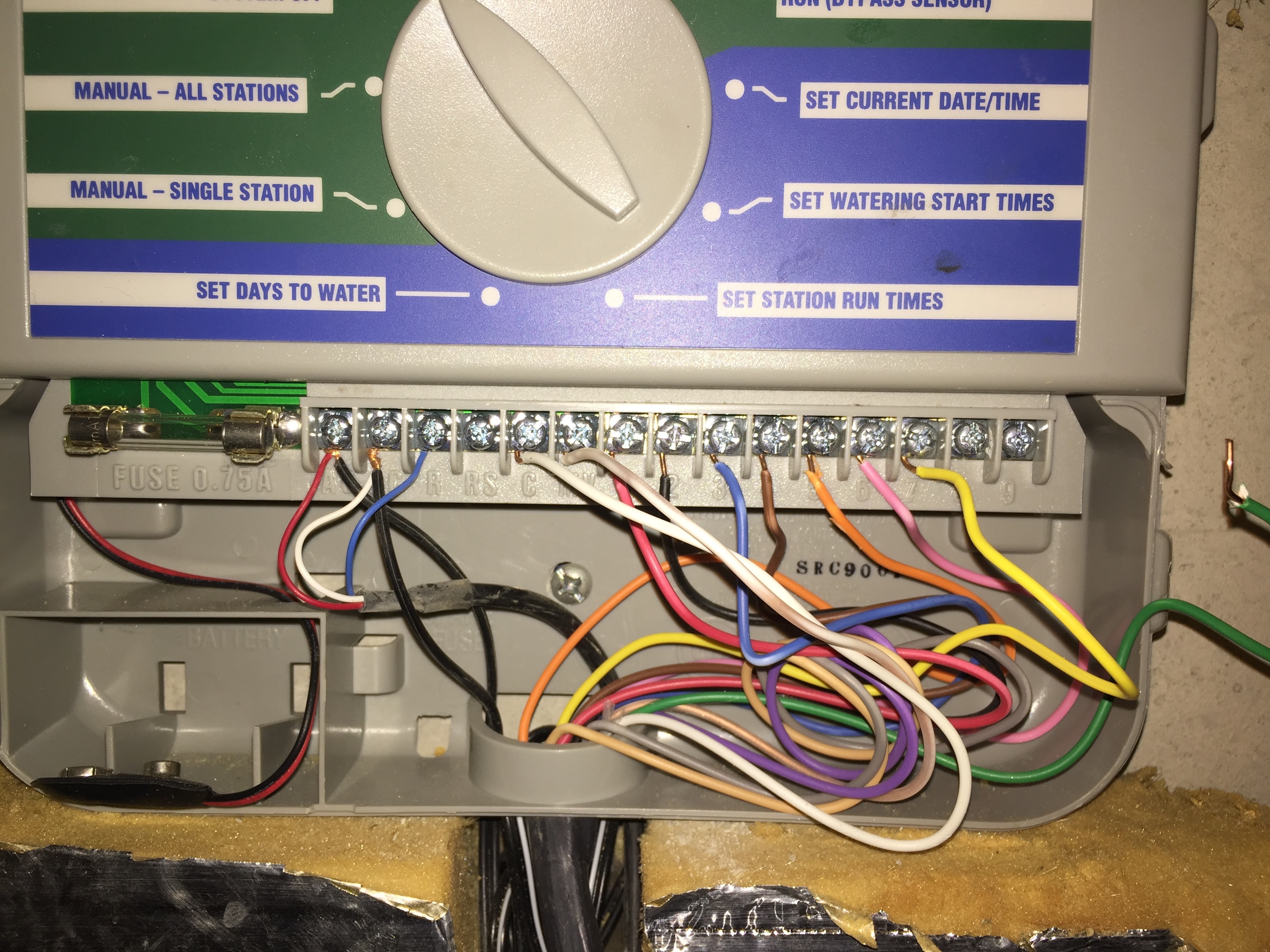 Hunter SRC Plus wiring. Moving over to a Rachio 2nd gen. On the current Hunter SRC Plus, there are two wires connected to the RS terminal. Where do these go on the new controller? I tried connecting the white to SC and black to S1 No luck The Hunter controller requires... Hunter SRC Complex Wiring. DLane September 15, 2017, 3:38pm #2. @Justonma - without looking at the wire bundle heading out to the valves and going default wire colors, I'd move the white wire to a Rachio C (ommon) port. If it is desired to include the rain sensor in the Rachio configuration then I'd put the gray wire in the Rachio SC ... Hunter SRC 9 Station Indoor Mount Controller. Features and Benefits. Dial programming Easy program entry for installers and end-users. 3 programs with multiple start times