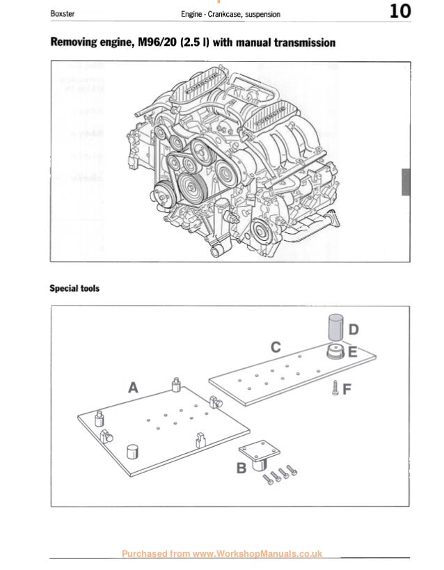 Exploded diagrams showing every part on your Porsche Boxster Click here for Porsche Boxster Performance Parts M96.20/21/22, M96.23/24 replacement engine without drive plate tiptronic without flywheel manual transmission without compressor from engine number
