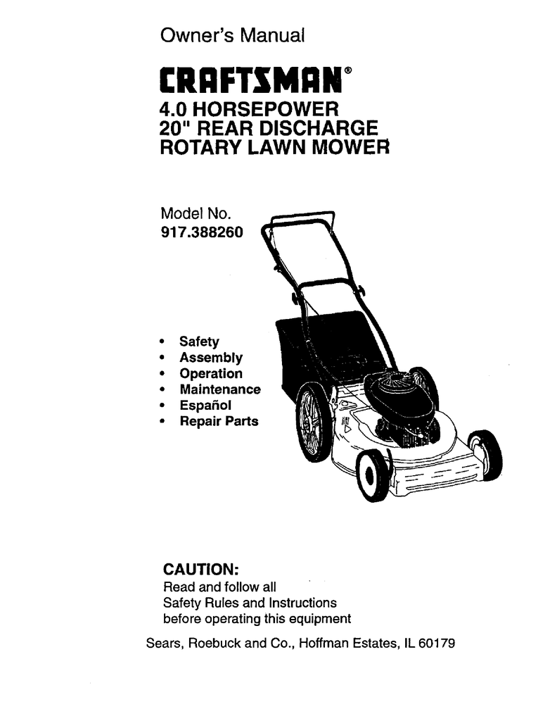Craftsman mower parts manual 944.367640 - Canadian ... the owner's manual, If this Craftsman Lawn Mower is used for commercial or rental puq_oses,this warranty Remove loose parts included with mower. 2. Craftsman lawn mowers manual 944 366530 Fixya. Craftsman Parts PartsBay.ca. CRAFTSMAN 917.376240 MOWER OWNER MANUAL.