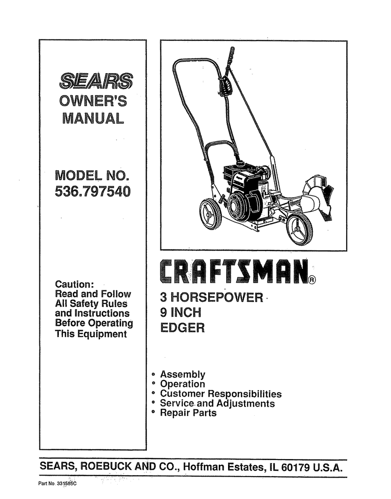 Craftsman 3.5 hp edger manual - United States instructions ... Here are the repair parts and diagrams for your Craftsman 536797460 3.5 hp 9″ edger. The diagram (s) below can help you find the right part. If you'd like help, we invite you to call our customer service number at the top of the page, or click chat. A Sears Craftsman 3.5 HP, 9″ gas-powered lawn edger, "Eager-1.".