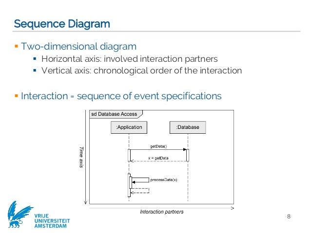 UML Multiplicity and Collections - defining and using ... UML Multiplicity and Collections. Multiplicity in UML allows to specify cardinality - i.e. number of elements - of some collection of elements.. Multiplicity element defines some collection of elements, and includes both multiplicity as well as specification of order and uniqueness of the collection elements.. Note, that [UML 2.4.1 Specification] does not separate multiplicity from ... The number of associations that occur among specific ... An Opt frame and an Alt frame do essentially the same thing. (T/F) False An Opt frame and a true/false condition on a message serve essentially the same purpose. (T/F) True In a sequence diagram, a message is considered to be an action that is invoked on the destination object. Allen Holub's UML Quick Reference | Allen Holub Diagrams are an alternative presentation of a sequence diagram. They tend to be more compact, but harder to read, than the equivalent sequence diagrams. The example at left is identical in meaning to the Sequence-Diagram example at the end of the previous section. (It represents the same objects and message flow.) The boxes are objects.