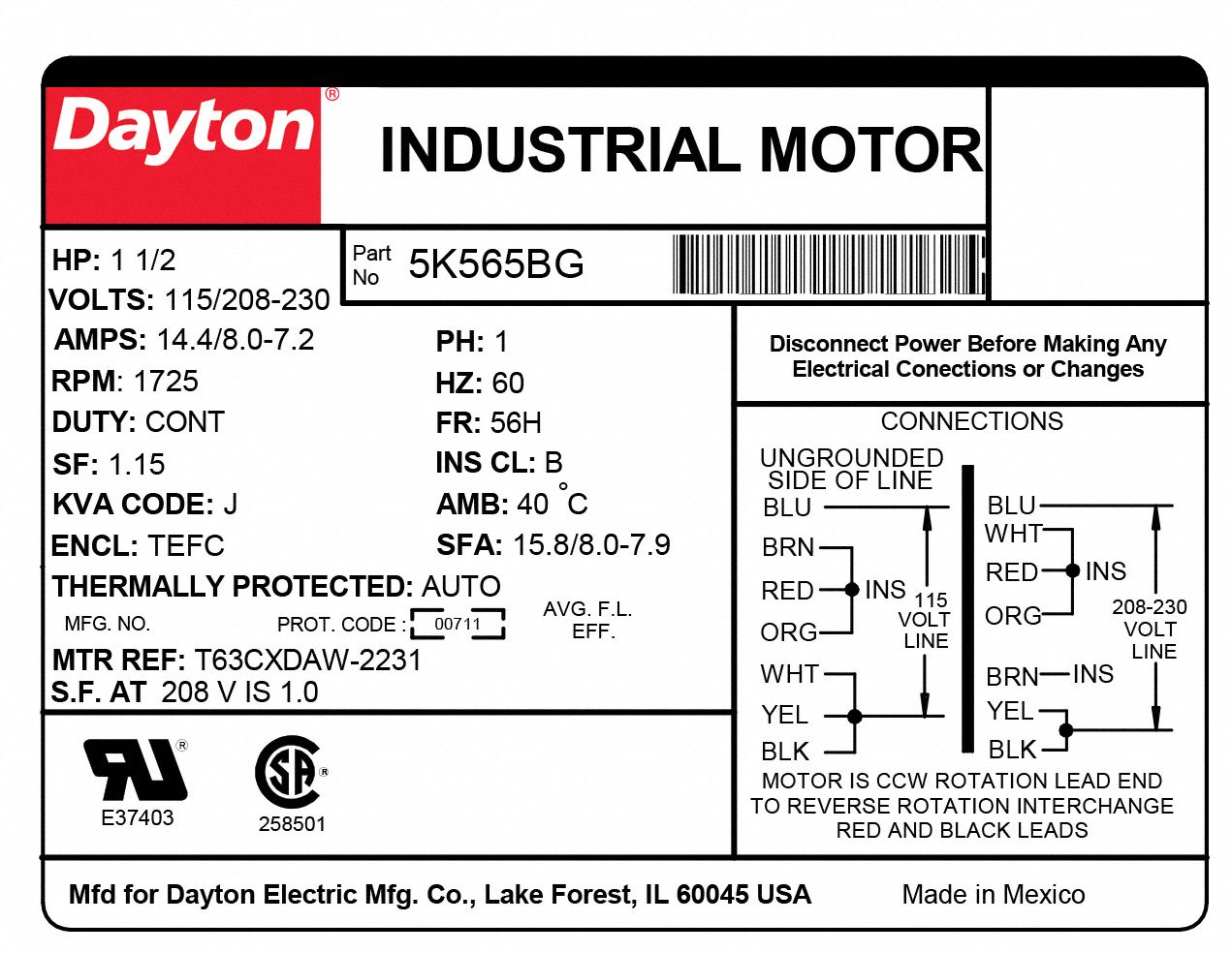 Grainger-Dayton-motor-wiring.pdf - InspectAPedia.com Dayton Electric Mfg. Co. 5959 West Howard St. Niles, IL 60714 USA ... TITLE WIRING DIAGRAM. XXX 0.005 .XXXX 0.0005. CHK ANG †1/2.1 page Dayton 1 Hp Electric Motor Wiring Diagram - IOT Wiring Diagram IOT Wiring Diagram. Dayton general purpose motor 1 hp capacitor start run nameplate rpm 725 voltage 115 208 230v ac 31tr80 119162 00 grainger 3 450 31tr94 high torque farm duty 6k727 2 20vd06 103874 24c182 210 22 belt drive 56h frame zoro com electric model 5k960 a i need schematic of wiring with numbering for external leads do sd guru pre 1950 antique fan collectors association afca forums ... PDF DAYTON MOTORS PRODUCT GUIDE - W. W. Grainger All Dayton motors offer full-fact nameplates with easy-to-read wiring diagrams. This helps reduce installation time and prevents miswiring. WHEN YOU NEED IT FAST, THE DAYTON BRAND DELIVERS. You'll get it quickly, because it's stocked at a nearby Grainger branch. You can count on great service, availability and technical knowledge with Grainger. Dayton Split Phase Motor Wiring Diagram - Wiring Diagram ... Dayton Split Phase Motor Wiring Diagram. Dayton general purpose motor open 4 hp split phase 1725 rpm 120v belt drive 3 practical machinist largest drum switch wiring 2 sd need a 1 voltage 115v ac 48z frame. Dayton General Purpose Motor Open Dripproof Rigid Base Mount 1 3 Hp 725 Nameplate Rpm 115v Ac 6xh45 Grainger.