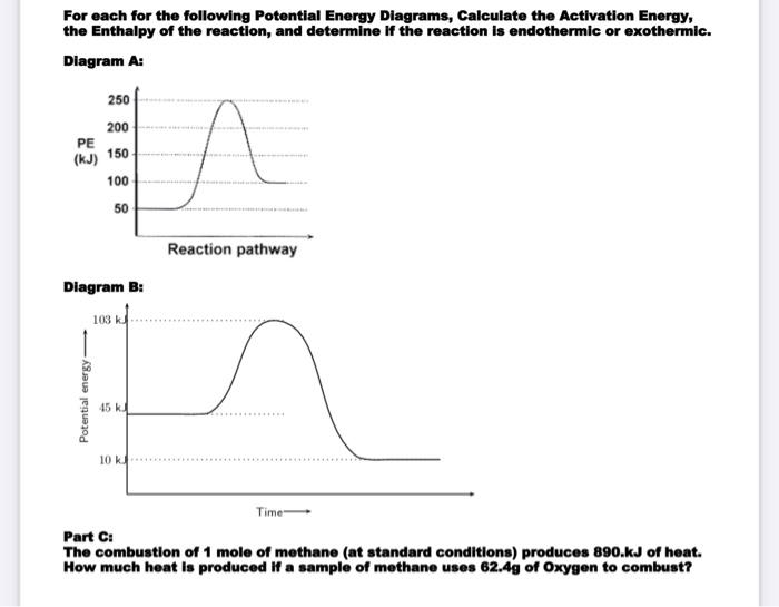 Potential Energy Diagram Practice Endothermic and ... Students will be given two Potential Energy Diagrams -- one Endothermic, one Exothermic. They will have to read the graph and determine if the graph is showing an endothermic or exothermic reaction, justify why it is so, then calculate the heat of reaction (delta H), activation energy (Ea), reverse activation energy, answer four conceptual multiple choice questions, and then determine if 9 ... Potential Energy Diagram Endothermic and Exothermic ... Potential Energy Diagram Endothermic and Exothermic A popular example of an endothermic chemical reaction is photosynthesis. Determine the heat of reaction DH for this reaction. The activation energy in an exothermic reaction is energy at the top of the curve minus the energy of the reactants. Endothermic versus exothermic comparison chart.